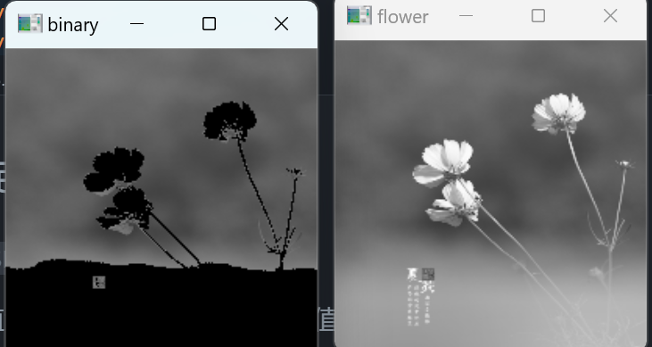 设置一个阈值,将灰度图中的每一个像素值与该阈值进行比较,小于等于阈值的像素就被设置为0(通常代表背景),大于阈值的像素就被设置为maxval(通常为255)