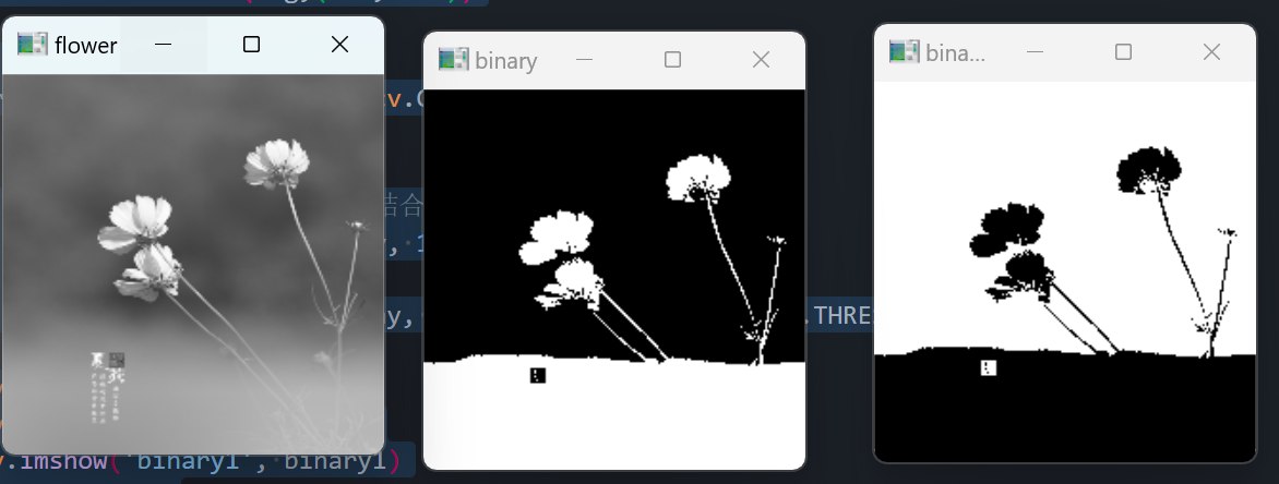 第二个值(binary):二值化后的图像矩阵。与输入图像尺寸相同。