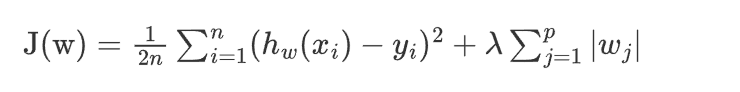Lasso回归是一种线性回归模型,它通过添加所有权重的绝对值之和(L1)来惩罚模型的复杂度。公式如下: