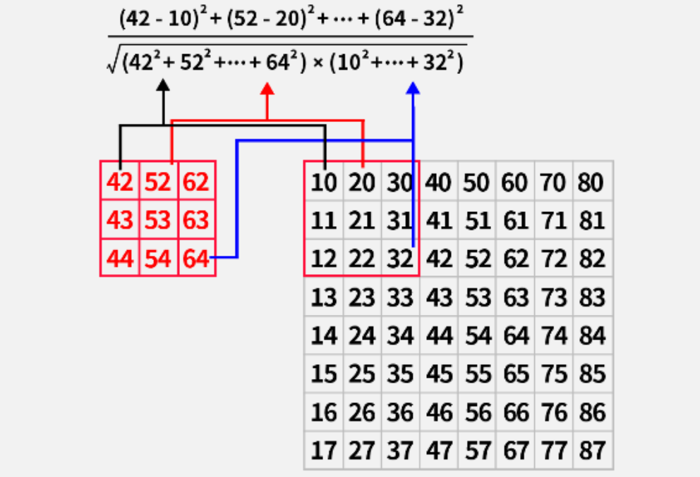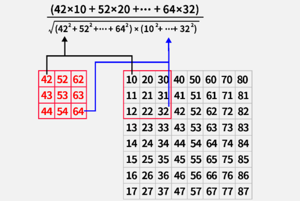 与相关匹配类似,只不过是将其值统一到0到1之间,值越大,代表匹配程度越高。如图: