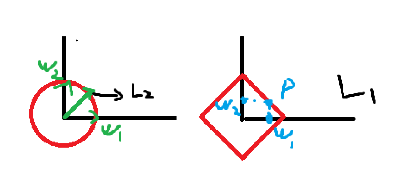 $L1=||w||1=\textstyle\sum{i=1}^{n}|w_i|$ 对应曼哈顿距离